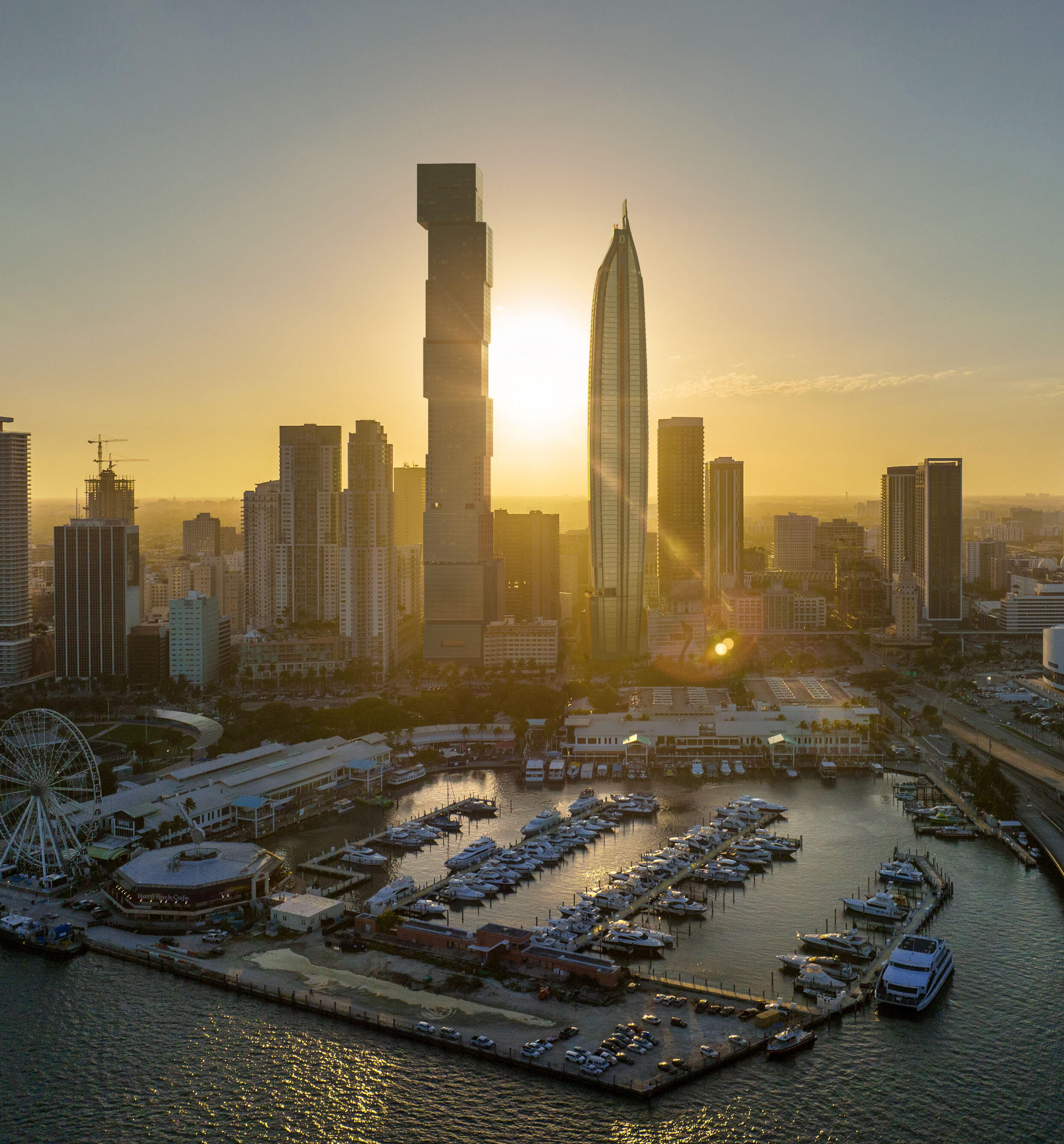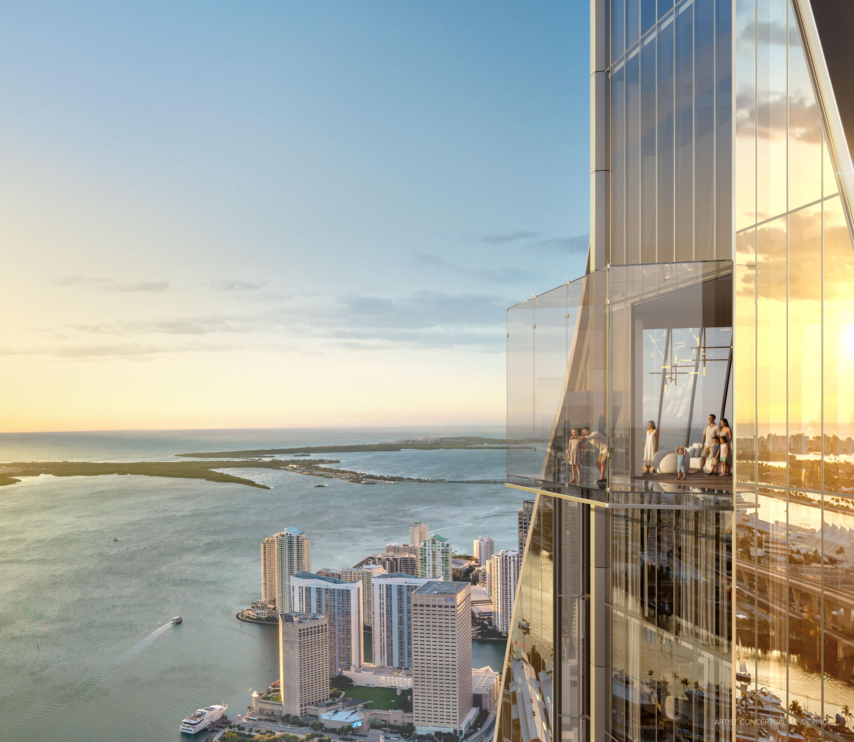 - 90-story tower with 421 fully finished residences- Unobstructed views of Downtown Miami, Miami Beach, and the Atlantic Ocean- Miami’s first observation deck, located on the upper levels- Two signature restaurants, including an iconic sky restaurant- Legendary Rose Bar- Immersive amenities including: Two resort-style pools, Comprehensive wellness and spa program, Deeded office suites